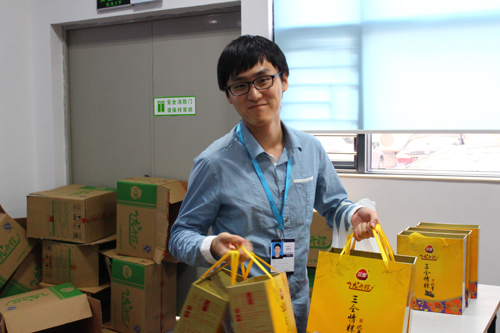 菖蒲高懸飲雄黃,竹葉紅豆粽子香,端午臨近,濃濃的節(jié)日氣氛彌漫華訊方舟,6月6日下午,由公司行政部精心準(zhǔn)備的一箱箱“三全龍舟粽”抵達(dá)公司階梯會(huì)議廳,各部們派代表領(lǐng)取集團(tuán)送給員工們的節(jié)日禮物,讓他們感受到家的溫暖,一箱箱龍舟粽,一張張開(kāi)懷笑臉,粽香情更濃。