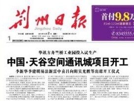 8月11日,荊州電視臺(tái)再次采訪并報(bào)道了華訊方舟科技(湖北)有限公司竺橋工業(yè)園和中國(guó)天谷荊州項(xiàng)目進(jìn)展。 報(bào)道稱,近兩年荊州的電子信息產(chǎn)業(yè)異軍突起,其中塊頭最大,投資最多