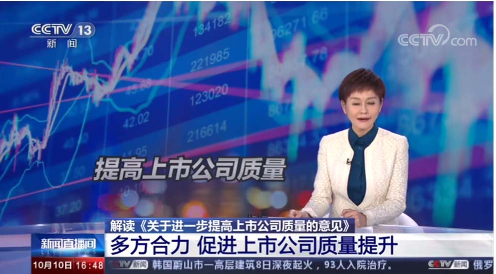 10月10日,在央視CCTV13(新聞?lì)l道)新聞直播間解讀《關(guān)于進(jìn)一步提高上市公司質(zhì)量的意見(jiàn)》:多方合力,促進(jìn)上市公司質(zhì)量提升報(bào)道中,華訊方舟集團(tuán)再度出鏡